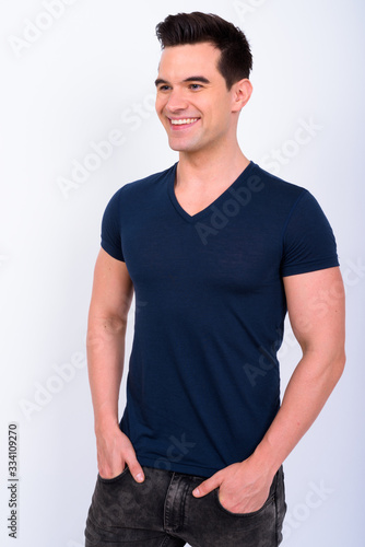 Fototapeta premium Portrait of happy young handsome man thinking