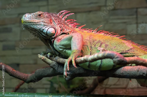 © Colored emotions, Obraz premium portrait of iguana behind the glass.