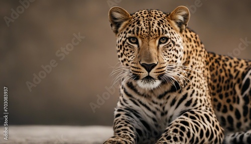 Fototapeta premium Portrait of leopard lying down and looking at the camera.