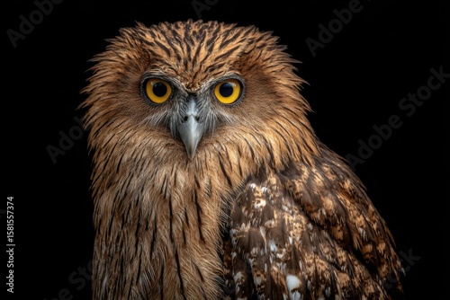 Fototapeta premium Portrait of Majestic Owl with Striking Yellow Eyes and Feathers
