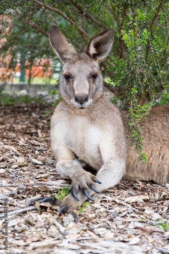 Fototapeta premium Portrait of male kangaroo relaxing in a sun shade.
