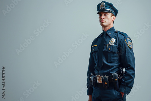 © sofiko14, Fototapeta premium Portrait of male police officer in uniform looking confident
