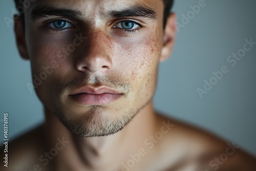 Obraz premium Portrait of Man with Blemishes in Neutral Studio Lighting