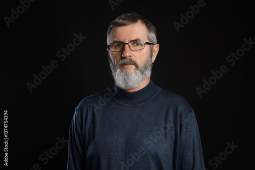 © New Africa, Naklejka premium Portrait of mature man in glasses on black background
