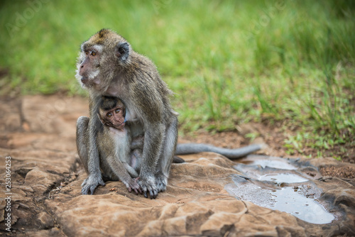 © ancamilushev, Naklejka premium Portrait of monkey and baby in nature