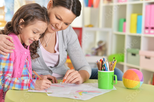 © aletia2011, Fototapeta premium Portrait of mother and daughter sitting at table