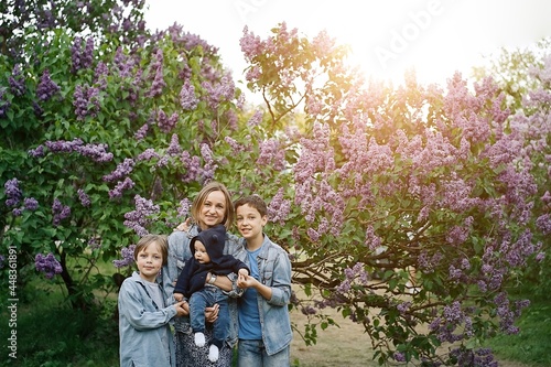Obraz premium Portrait of mother and three sons in the park
