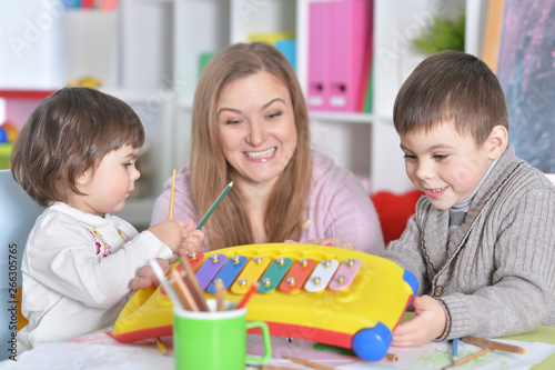 © aletia2011, Fototapeta premium Portrait of mother with children playing together