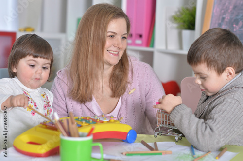 © aletia2011, Fototapeta premium Portrait of mother with children playing together