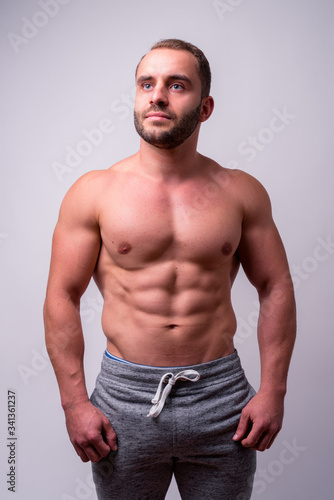 © Ranta Images, Fototapeta premium Portrait of muscular bearded man thinking shirtless