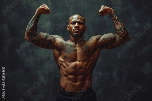 © Alina, Obraz premium Portrait of muscular bodybuilder on black background