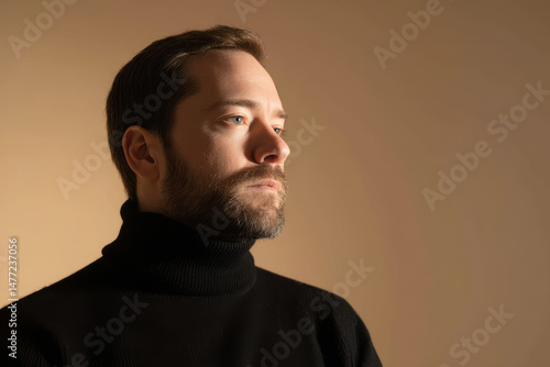 © Oleksandr, Fototapeta premium portrait of neuromarketer positioned to right displaying penetrating emotion