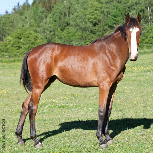 Fototapeta premium Portrait of nice hot-blooded foal