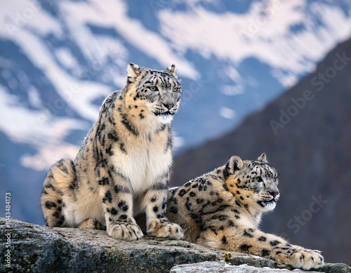 © MdRakibul, Obraz premium Portrait of nice snow leopard on the rock