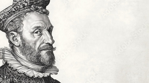 © Максим Фокин, Fototapeta premium Portrait of noble renaissance man in detailed engraving style