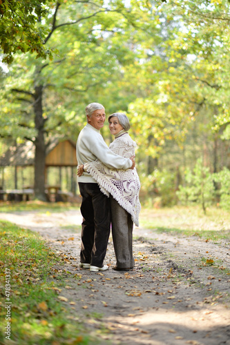 Fototapeta premium Portrait of old couple walking in autumn forest