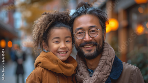 © lichaoshu, Fototapeta premium Portrait of parent and son in city