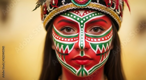 © Dadan, Fototapeta premium Portrait of Person Wearing Ornate Traditional Headdress – Cultural Heritage and Identity