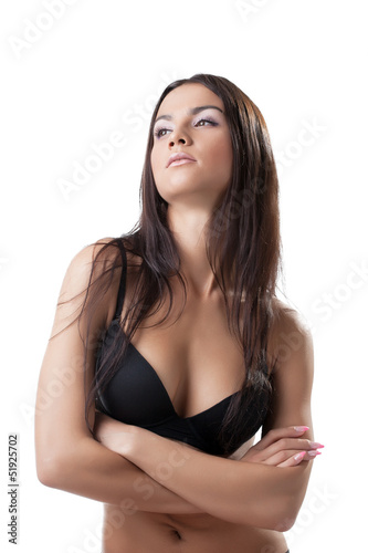 © Wisky, Fototapeta premium Portrait of pretty brunette posing in black bra