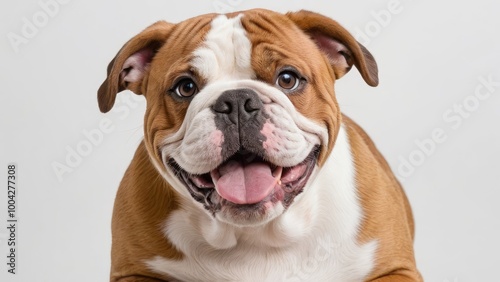 Fototapeta premium Portrait of Red english bulldog on grey background