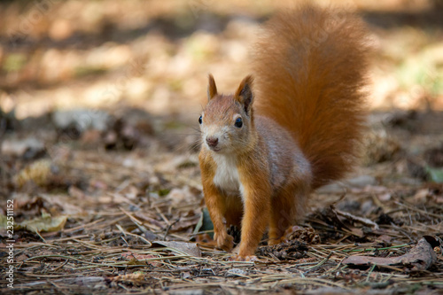Obraz premium Portrait of red squirrel in forest. Czech Republic.