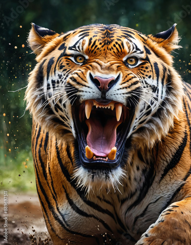 © Zsolt Biczó, Fototapeta premium Portrait of roaring angry and aggressive tiger