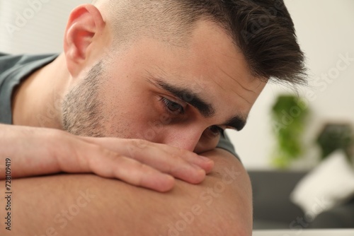 © New Africa, Obraz premium Portrait of sad man on blurred background, closeup
