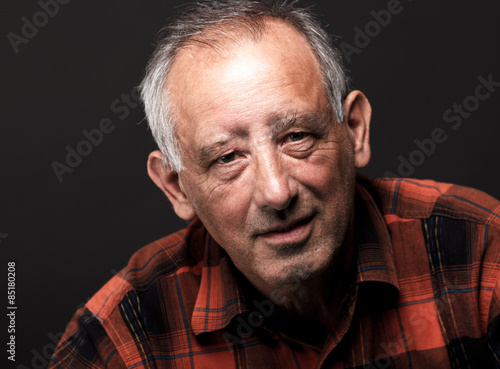 Obraz premium Portrait of senior man looking at camera on black background