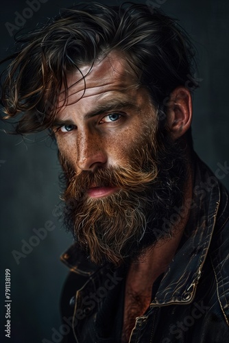 © Tatyana Olina, Fototapeta premium Portrait of serious beard hairstyle man