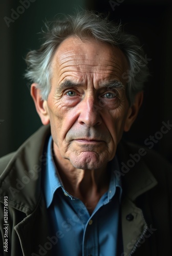 © Michael, Fototapeta premium Portrait of serious senior man showing wrinkles and grey hair