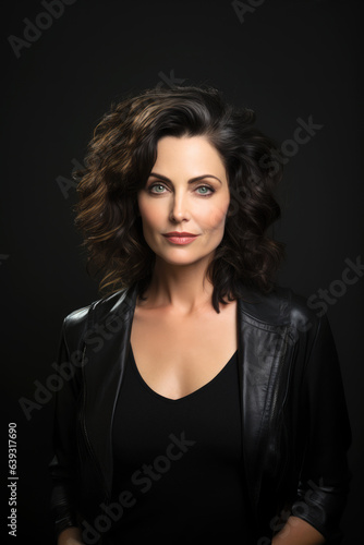 Fototapeta premium Portrait of sexy brunette woman on black background