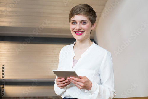 Fototapeta premium Portrait of smiling businesswoman holding tablet