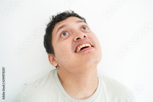 Obraz premium Portrait of smiling disable asian men standing on white background