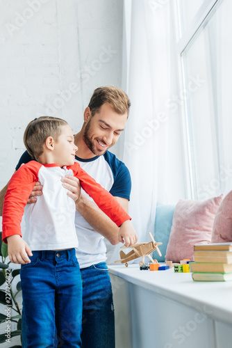 © LIGHTFIELD STUDIOS, Fototapeta premium portrait of smiling father holding little son at home