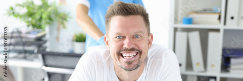 © H_Ko, Obraz premium Portrait of smiling man at proctologist appointment