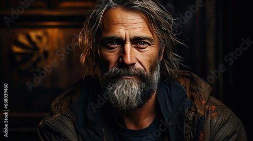© tanyastock, Fototapeta premium Portrait of smiling mature man standing on background. Man portrait illustration. Generative AI