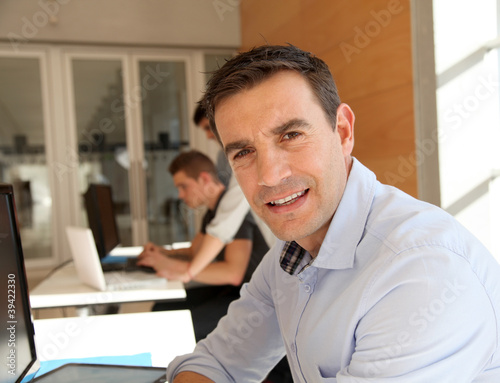 © goodluz, Obraz premium Portrait of smiling teacher at school