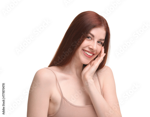 © New Africa, Fototapeta premium Portrait of smiling woman on white background