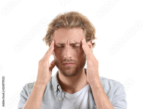 © Pixel-Shot, Naklejka premium Portrait of stressed man on white background