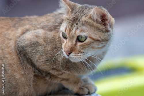 © Patara, Fototapeta premium Portrait of striped Thai cat with green eyes