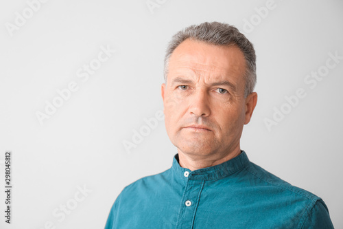 Obraz premium Portrait of stylish mature man on light background