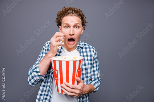 Fototapeta premium Portrait of stylish trendy attractive handsome scared worried fa