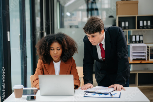 © laddawan, Fototapeta premium Portrait of success business people working together in home office. Couple teamwork startup concept