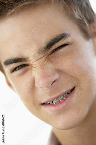 Obraz premium Portrait Of Teenage Boy Looking Grumpy