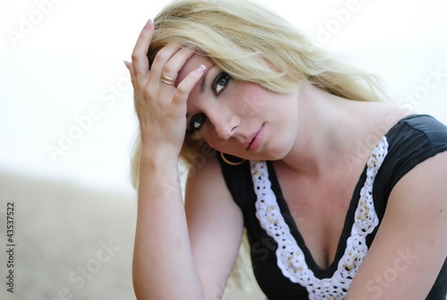 © len4ik, Obraz premium Portrait of the beautiful blonde near clay captive