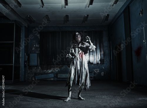 © Nomad_Soul, Fototapeta premium Portrait of the horror zombie woman. Halloween.