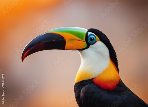 © abu, Naklejka premium Portrait of Toucan bird. Costa Rica wild Tucan. isolated orange background
