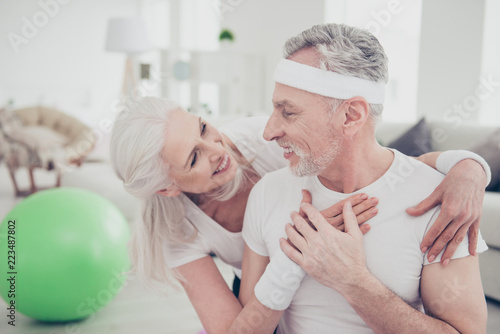 Fototapeta premium Portrait of two adorable healthy charming nice stylish cheerful