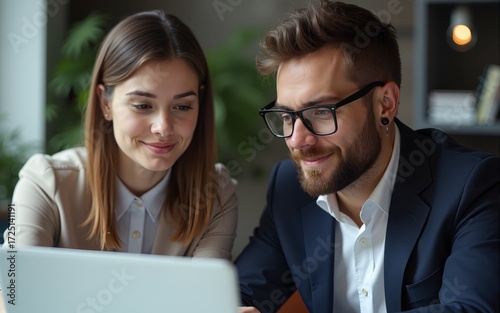 © Helen, Fototapeta premium Portrait of two business colleagues, looking at something online. High quality