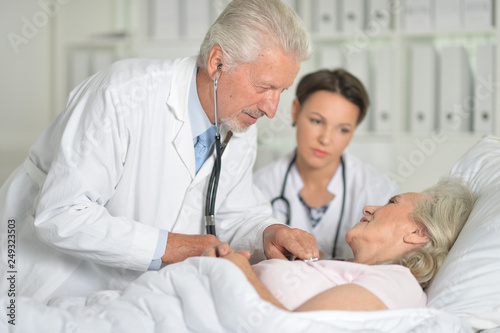 Obraz premium Portrait of two professional doctors inspecting patient